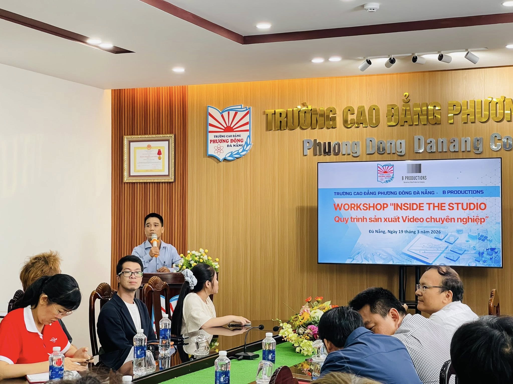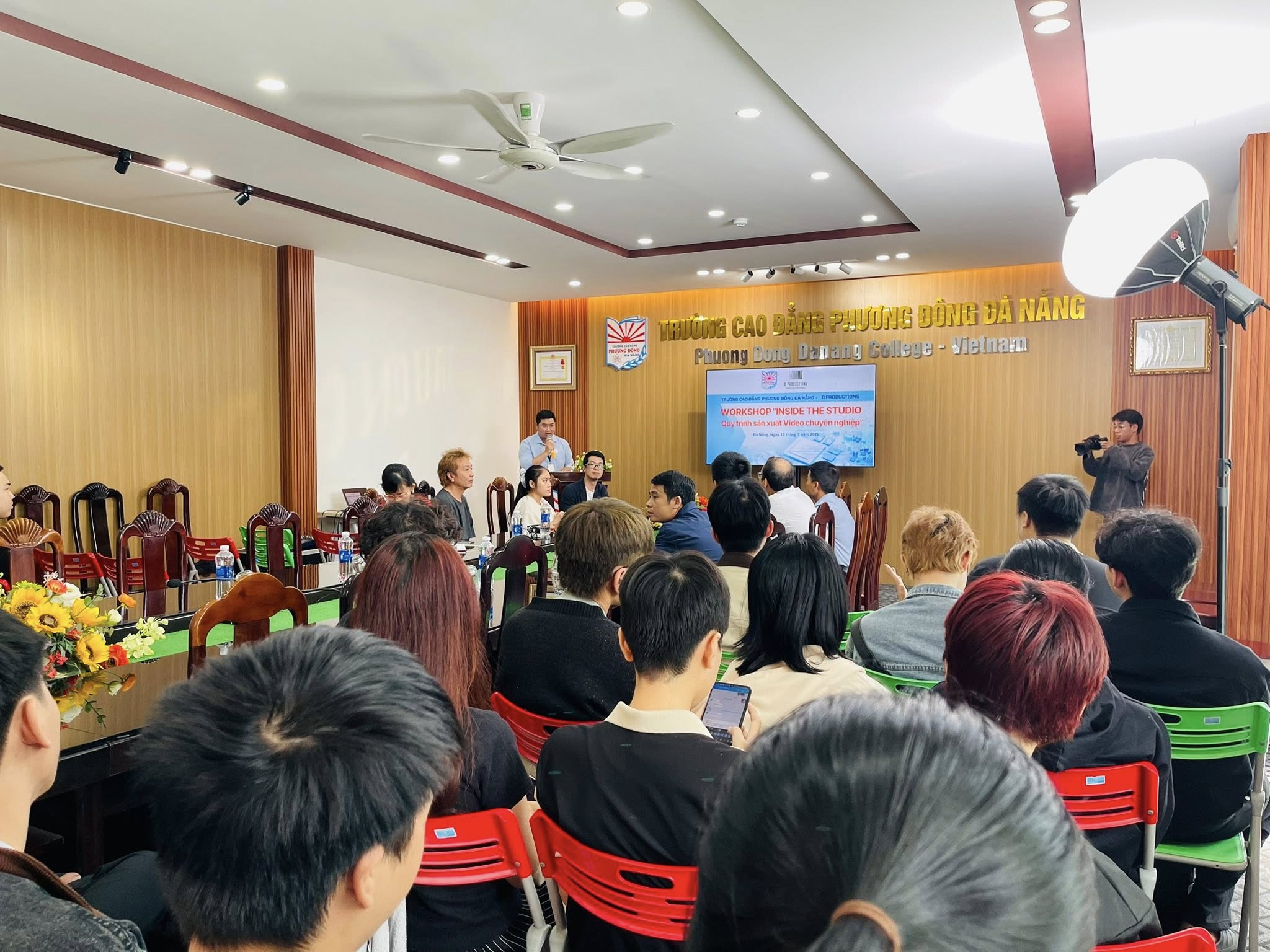 Sáng ngày 19/03/2026, Trường Cao đẳng CNTT Chuyên nghiệp (chương trình liên kết giữa iViettech và Trường Cao đẳng Phương Đông Đà Nẵng) đã phối hợp cùng Công ty B Productions (Nhật Bản) tổ chức thành công Workshop “Inside The Studio – Quy trình sản xuất Video chuyên nghiệp”.